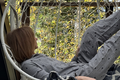 На террасе есть садовая мебель, и двухместная качеля-кокон.