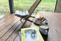 Кровать размером 180 на 200 с шикарным видом на лес, начиная с террасы.